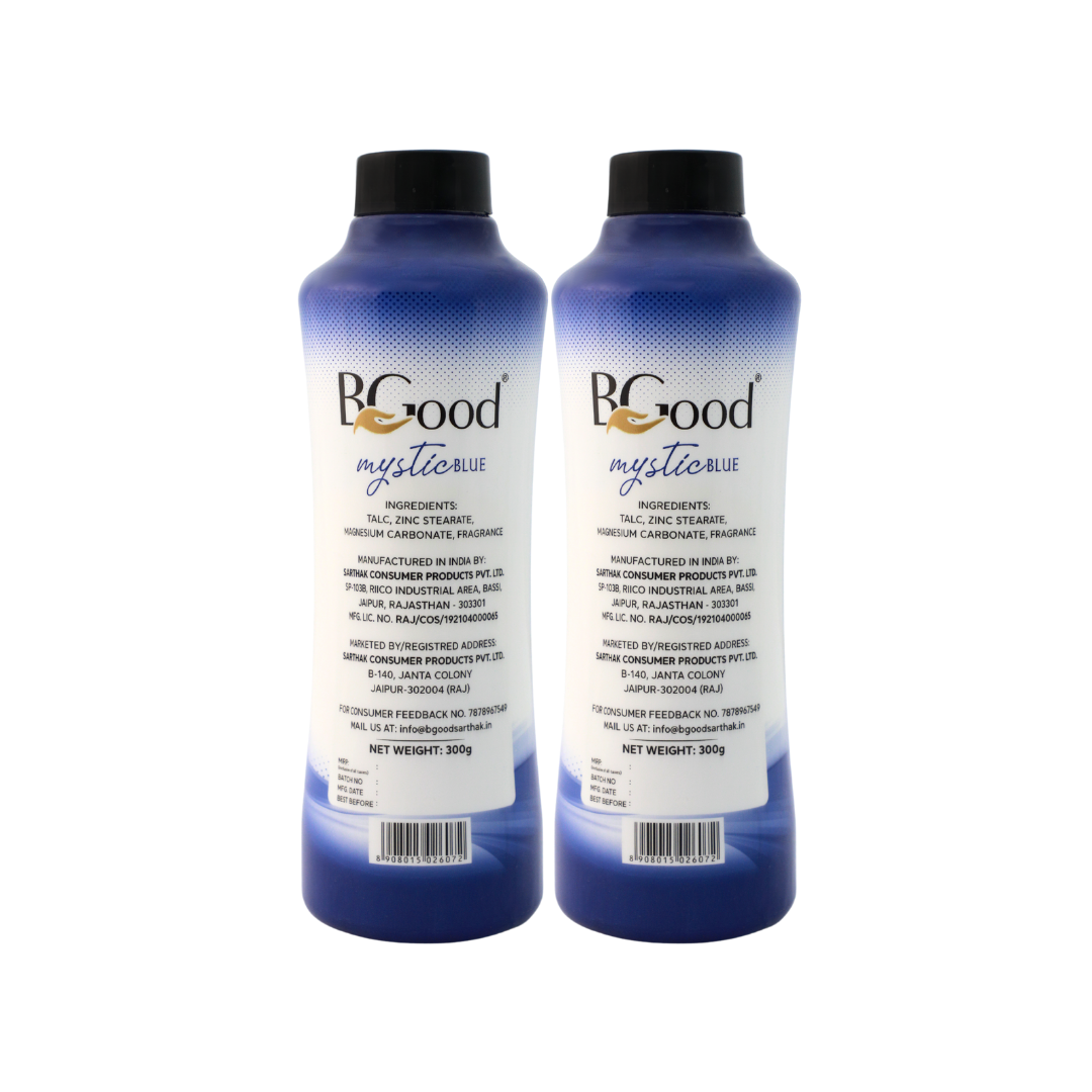 BGood | Mystic Blue Talcum Powder For Body & Face 300ml x 2 Pack | Suitable for All Skin Type